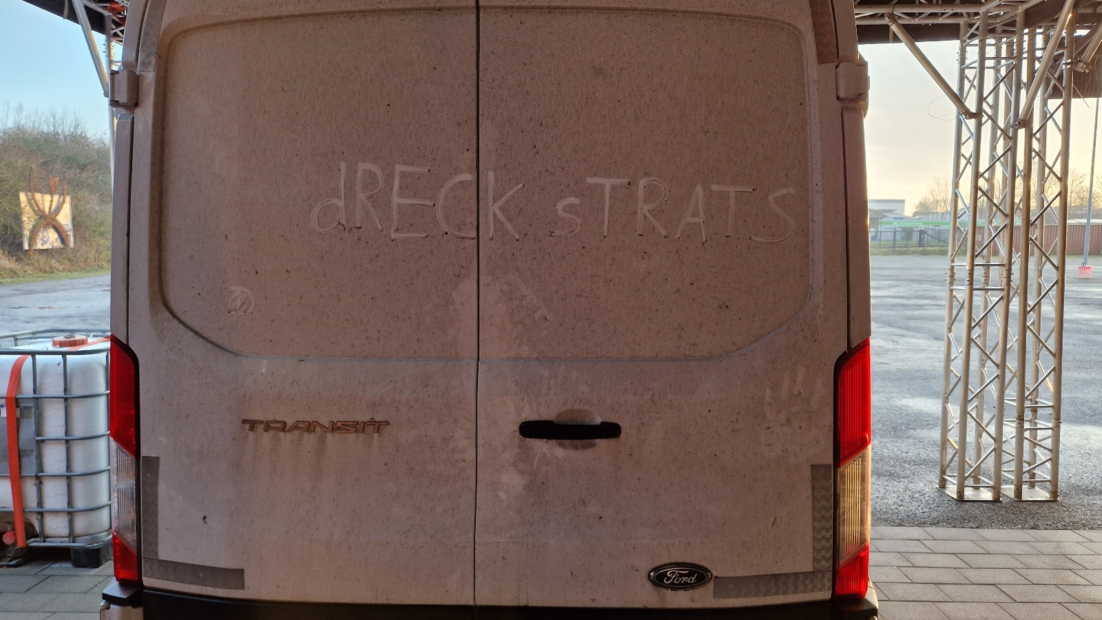 Zu Recht wurde unser Transporter beschmiert. Für diesen Humor ist unsere Crew verantwortlich.