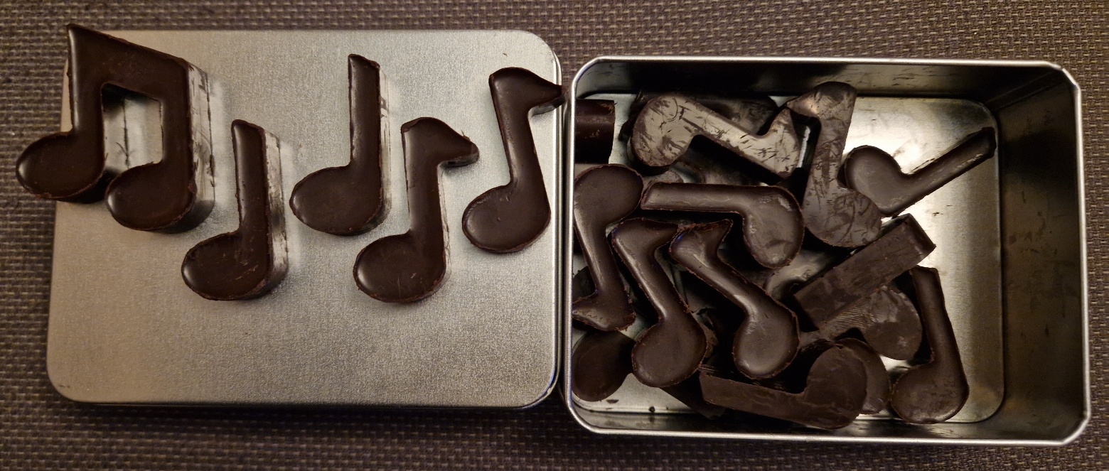 Von den Edelfans Karin und Sandra bekommen wir selbts gemachte Schokolade in Viertel- und Achtelnoten.