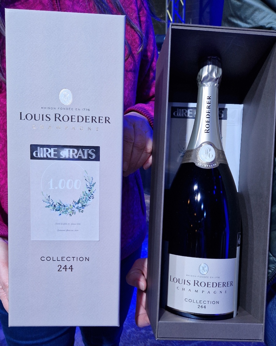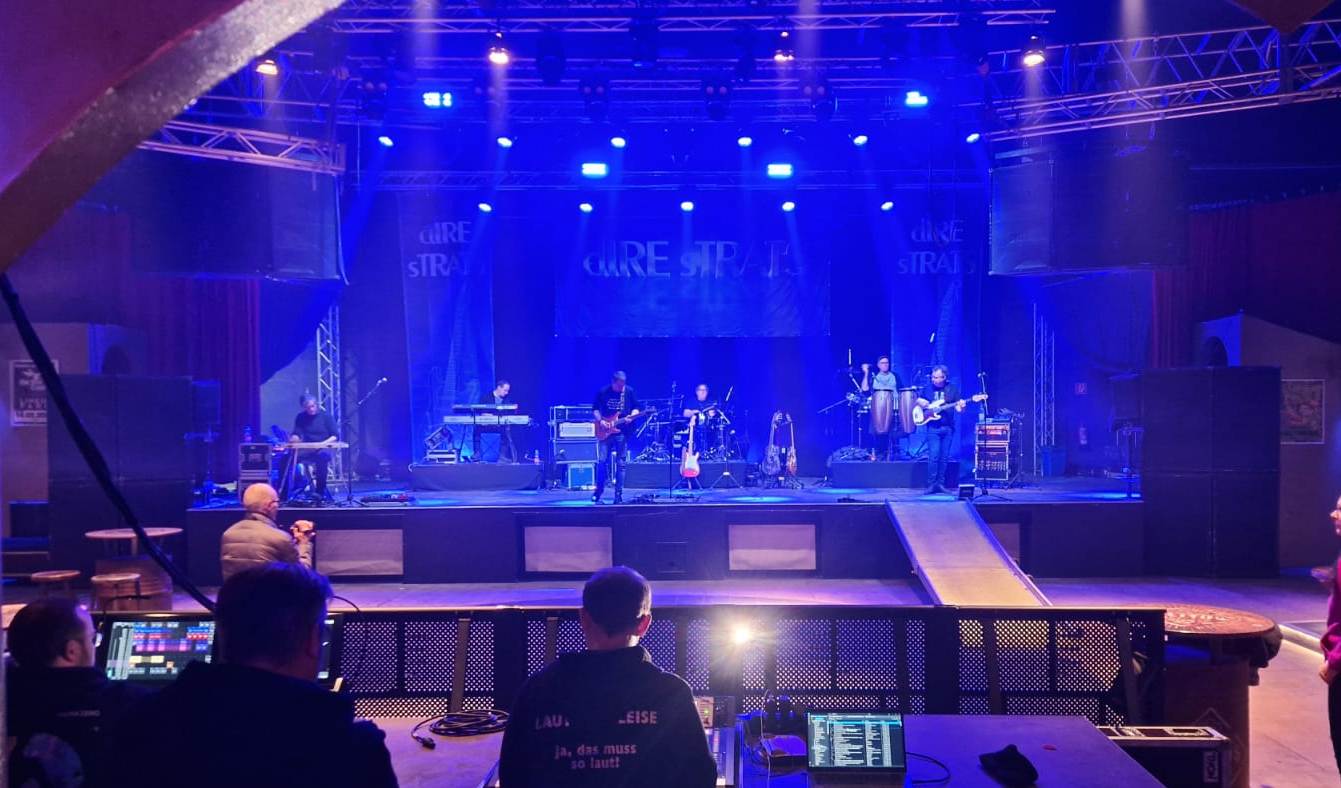 Im zweiten Teil unseres Jubiläumswochenendes sind wir in der wunderbaren Fabrik in Coesfeld zu Gast. Und heute ist es dann endlich so weit. Wir spielen das tausendste Konzert in der Geschichte der Dire Strats. Diese unglaubliche Zahl begleitet uns den ganzen Auftritt hindurch. Die Atmosphäre des Abends ist dementsprechend und trägt uns, gemeinsam mit dem tollen Publikum, durch dieses für uns einzigartige Event. Eine Überraschung gab es schon zuvor: unser langjähriger Fan der ersten Stunde und guter Freund Holger lässt uns aus der Ferne eine riesige Flasche Champagner zukommen, mit dem Rat, die doch im Anschluss an das Konzert gemeinsam zu leeren. Diesen Rat nehmen wir natürlich gerne an. Doch zuvor haben wir noch etwas ganz Besonderes zu tun: die riesige Torte teilen wir nach dem Konzert am Merchendise-Stand mit unseren Gästen und die einhellige Meinung steht schnell fest: die Torte ist erste Sahne.