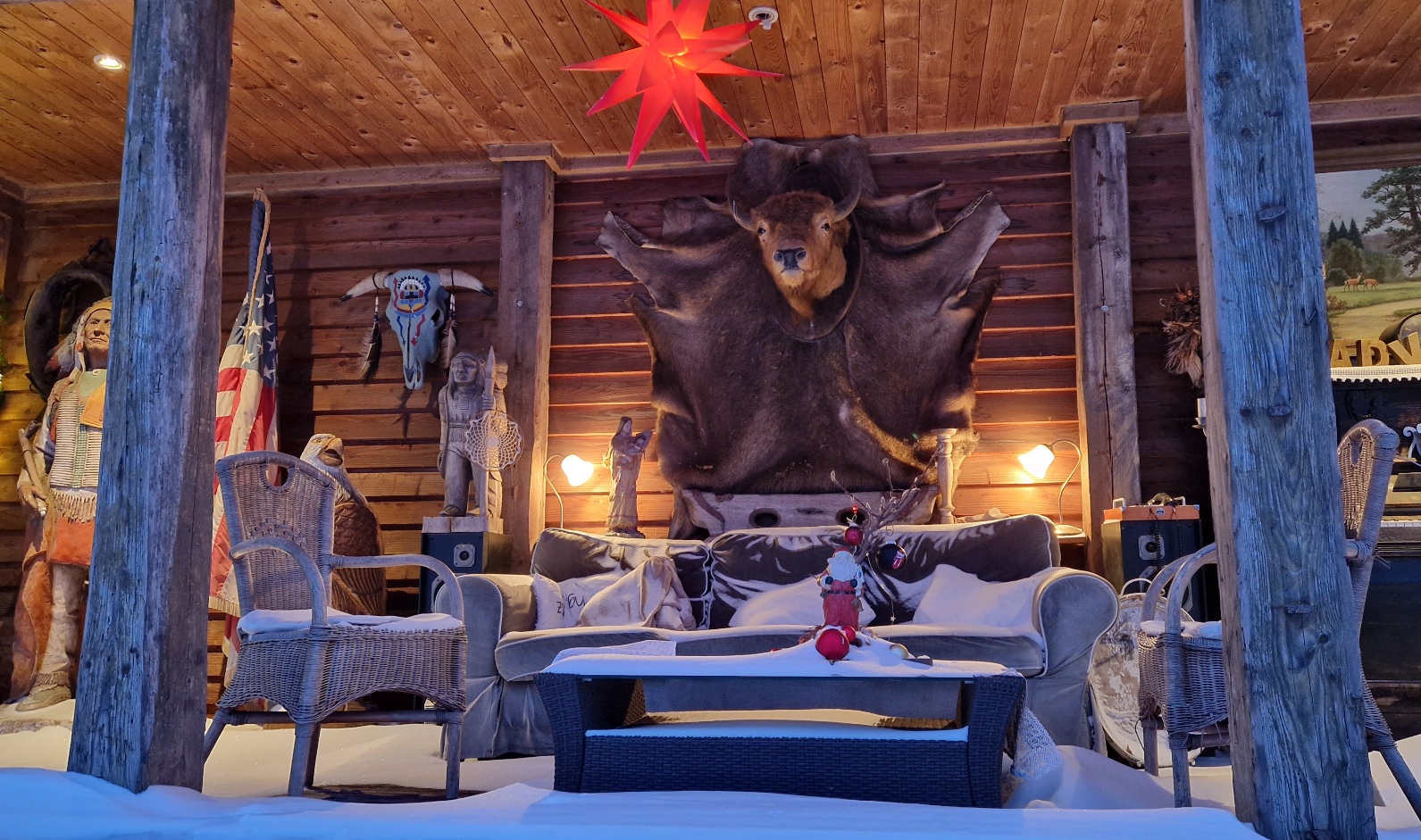 Die Bluesgarage bei Schnee. Eine beeindruckende Anlage.